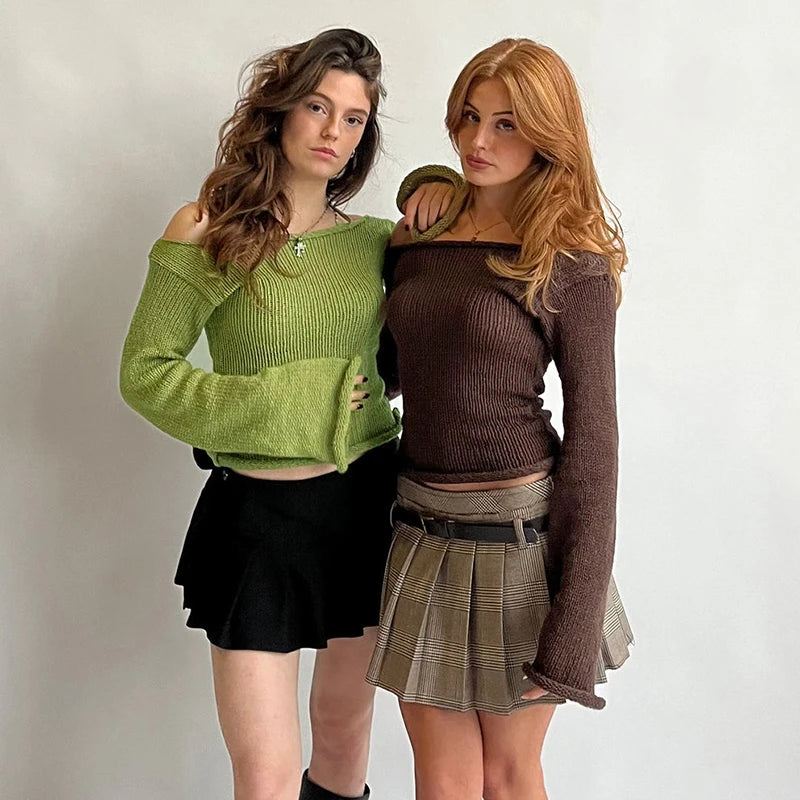 Knit Off Shoulder Slim Long Bell Sleeve Sweater